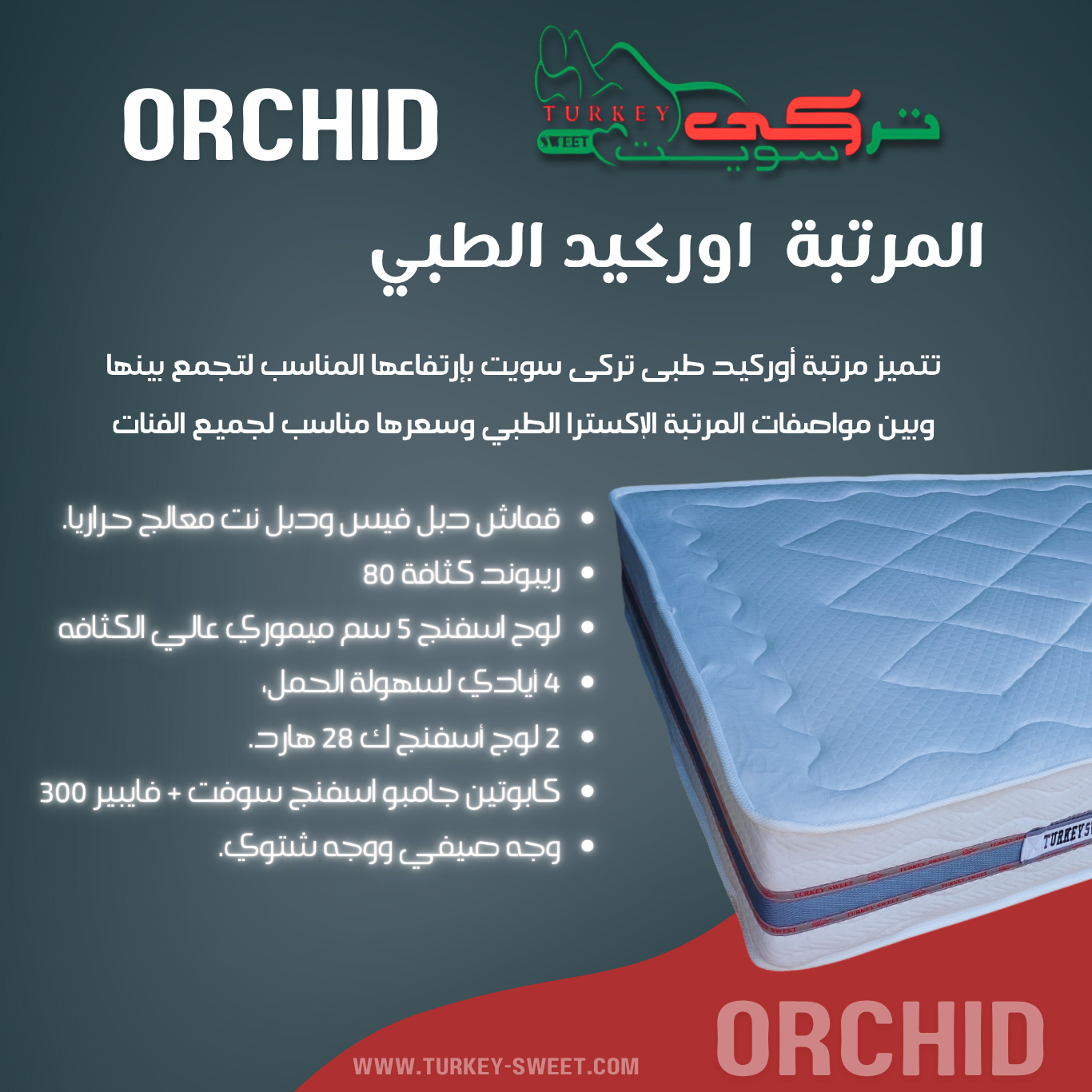 استمتع بتجربة نوم لا مثيل لها مع مرتبة أوركيد الطبي، التي تجمع بين أحدث التقنيات والجودة العالية بسعر مناسب لكافة الفئات.